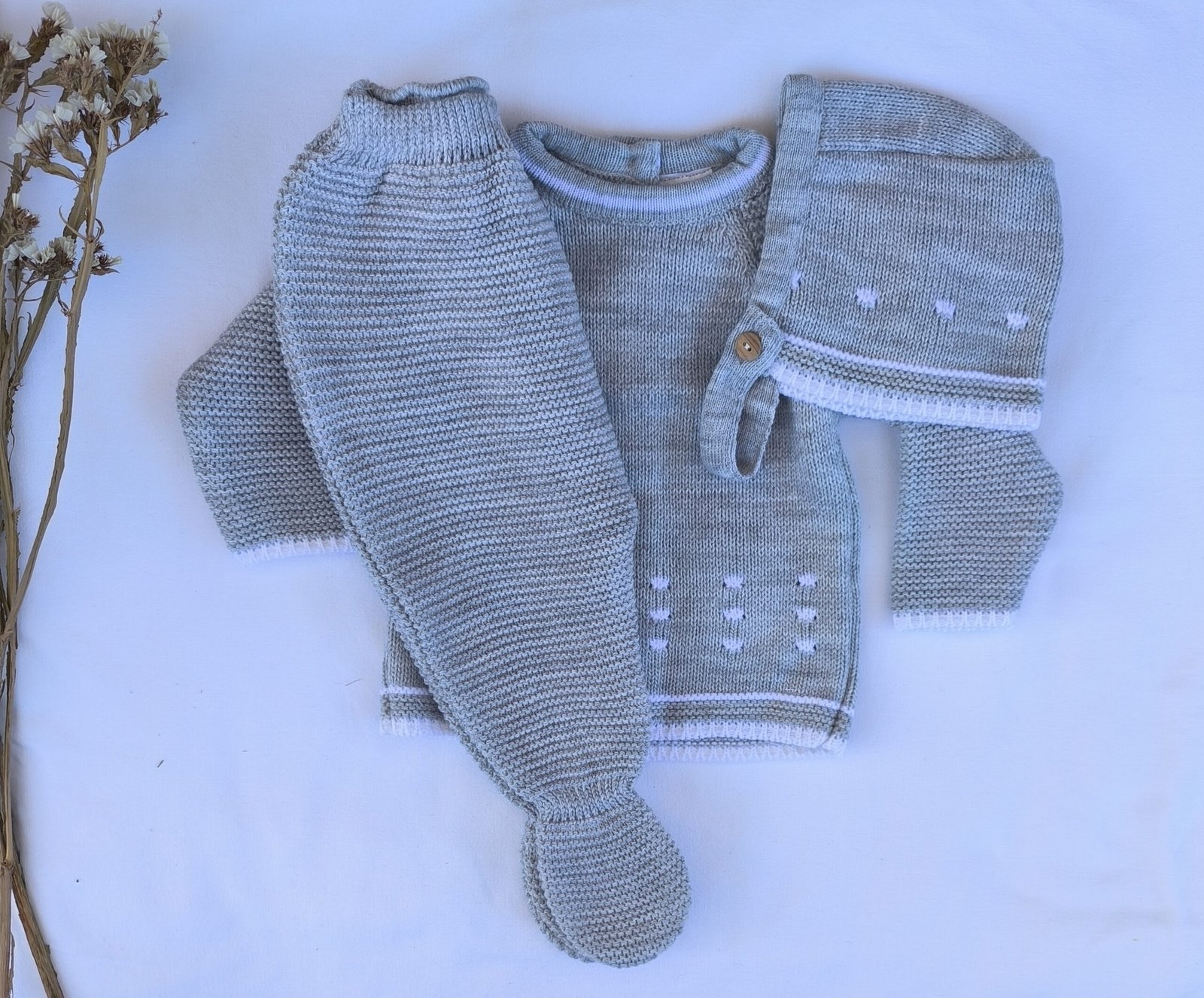 Conjunto tres piezas en gris con detalles blancos. Ideal para esos primeros días.