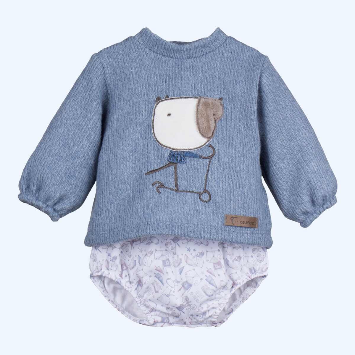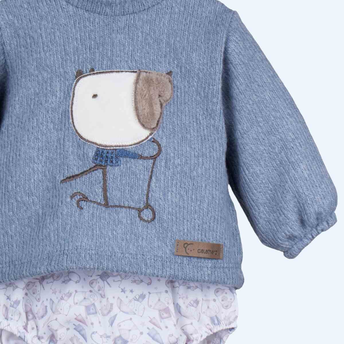 Conjunto suave de sudadera y pololo a juego en tonos azules.